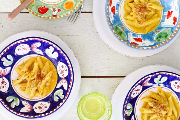 Nothing presents a plate of pasta better than a colorful dish, decorated with fruits, fish, and all the tokens of the Amalfi Coast. Many ceramic makers on the coast, like Ceramiche Casola, sell brilliant tableware like espresso cups to pasta bowls. For the perfect seaside touch, Vietri’s Campagna Collection brings the coast straight to you with dazzling settings inspired by traditional ceramics from Amalfi.