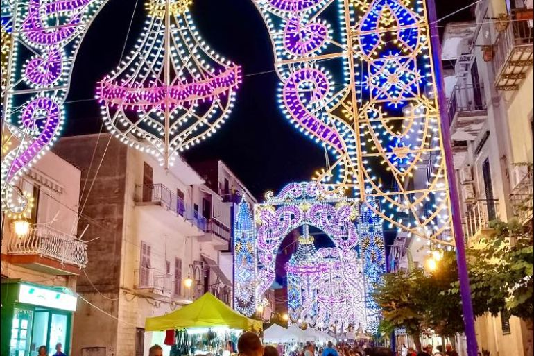In suo onore, la città di Sorrento ha costruito una splendida chiesa con una cupola verde e gialla nel cuore di Marina Grande, e organizza ogni anno questa festa. A partire da Piazza Tasso fino a Marina Grande, archi luminosi intricati e colorati nei toni del viola, verde e giallo illuminano il cammino verso la chiesa, mentre luci floreali rosse e arancioni decorano il resto dell’area.