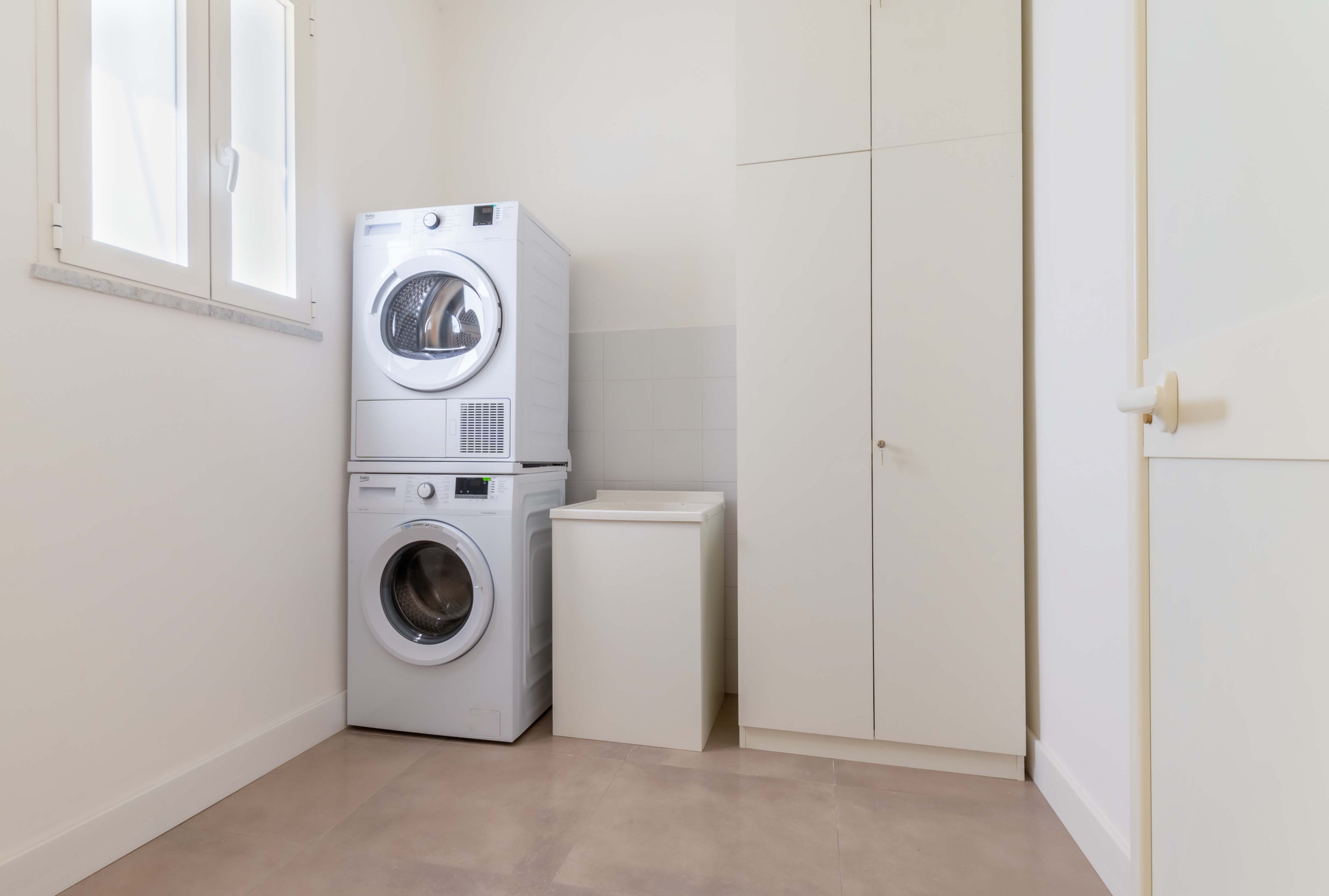 • Lavanderia privata: con lavatrice, asciugatrice, asse e ferro da stiro a disposizione degli ospiti.