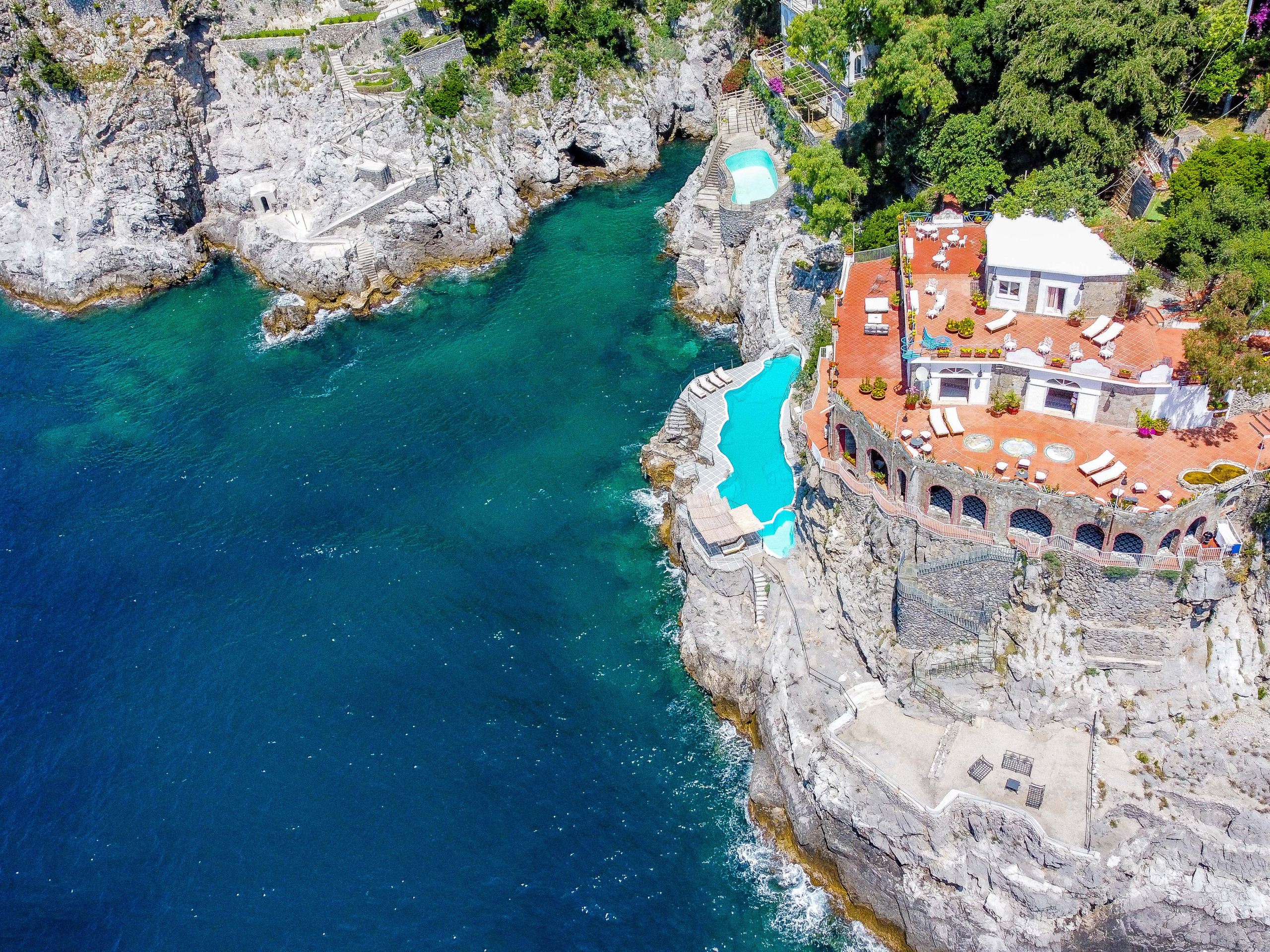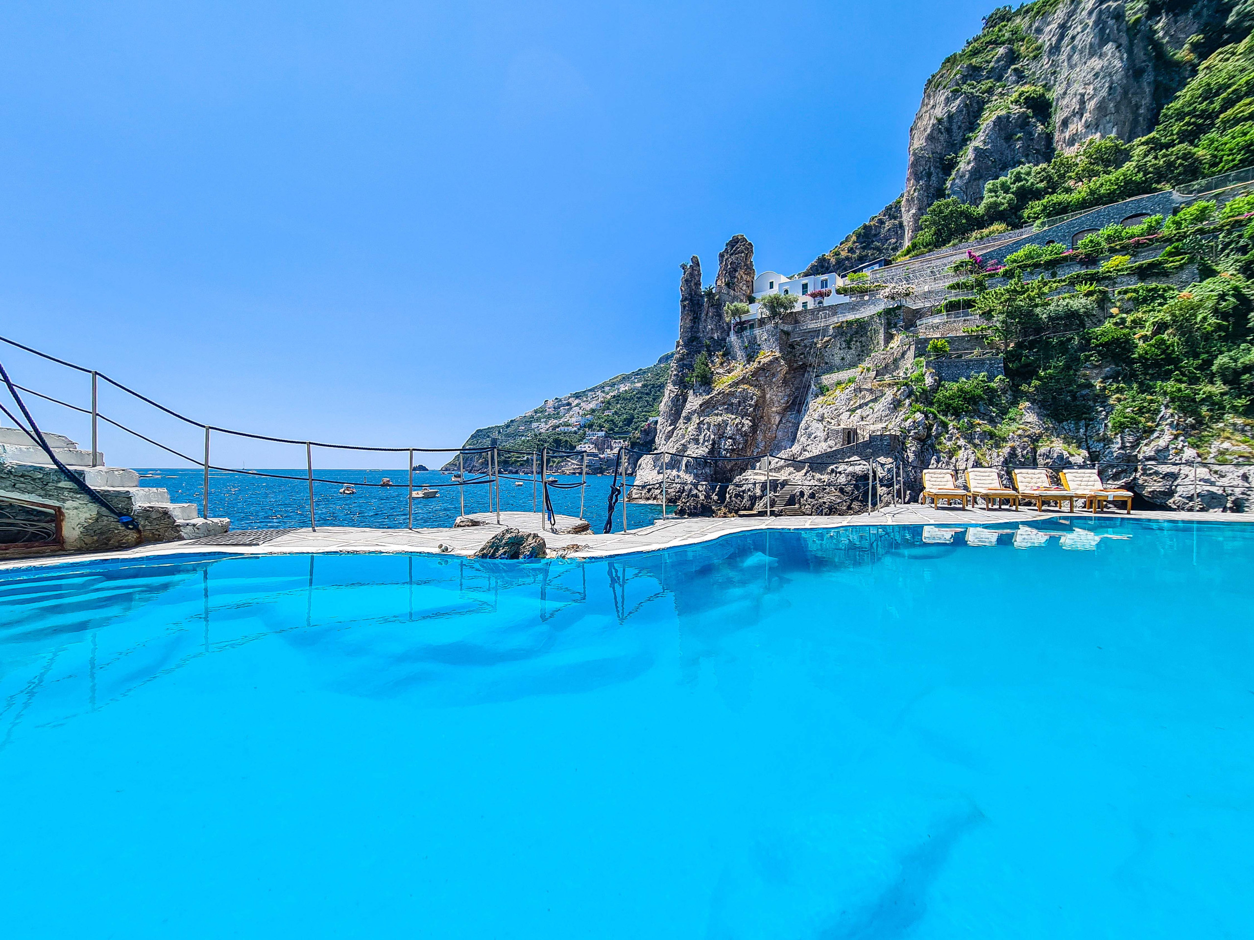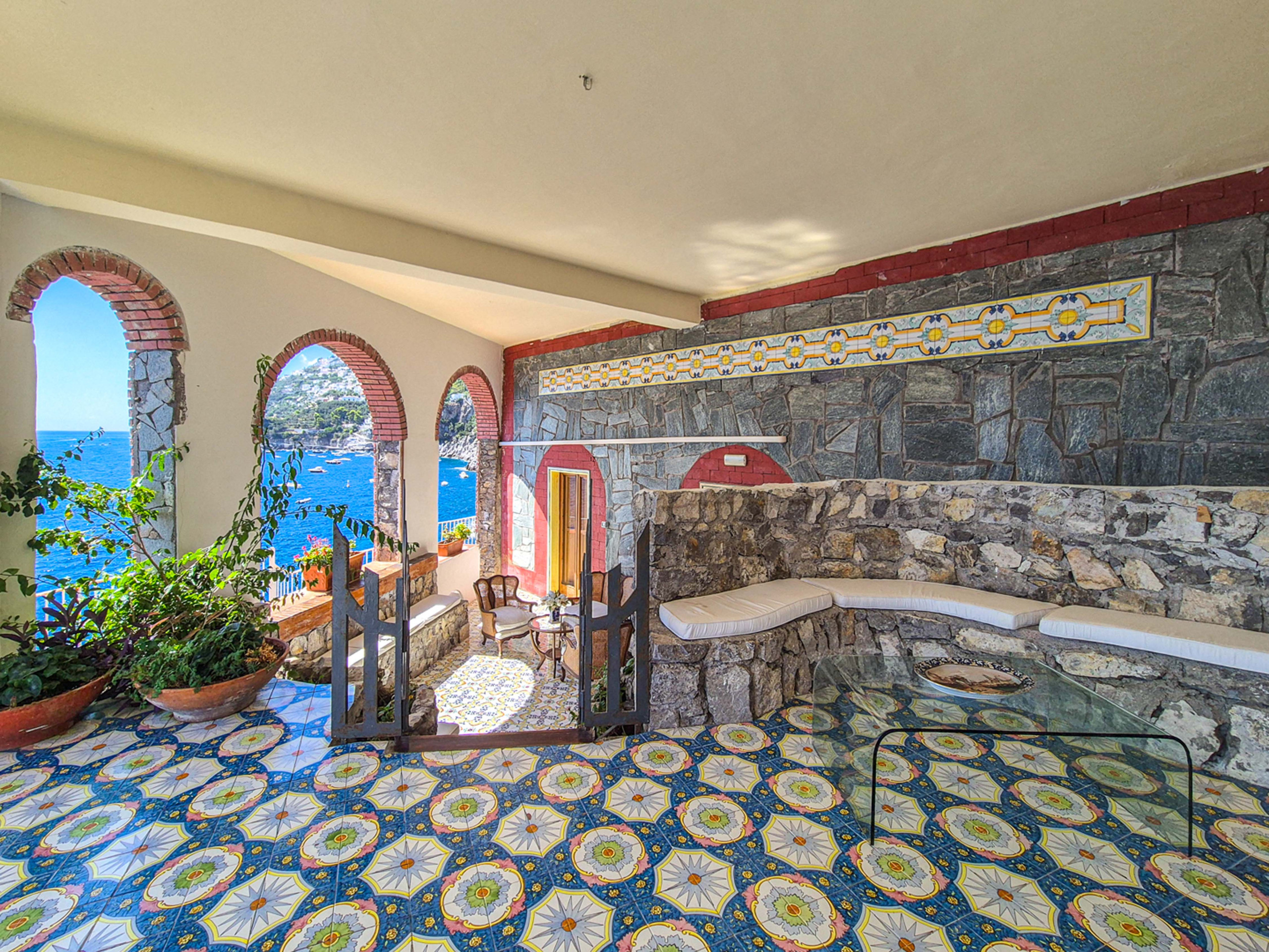 Esclusiva villa panoramica a Furore con piscina privata, ampio giardino privato, terrazze vista mare e accesso diretto al mare, perfetta per gruppi e famiglie che desiderano privacy, servizi e una posizione strategica in Costiera Amalfitana.