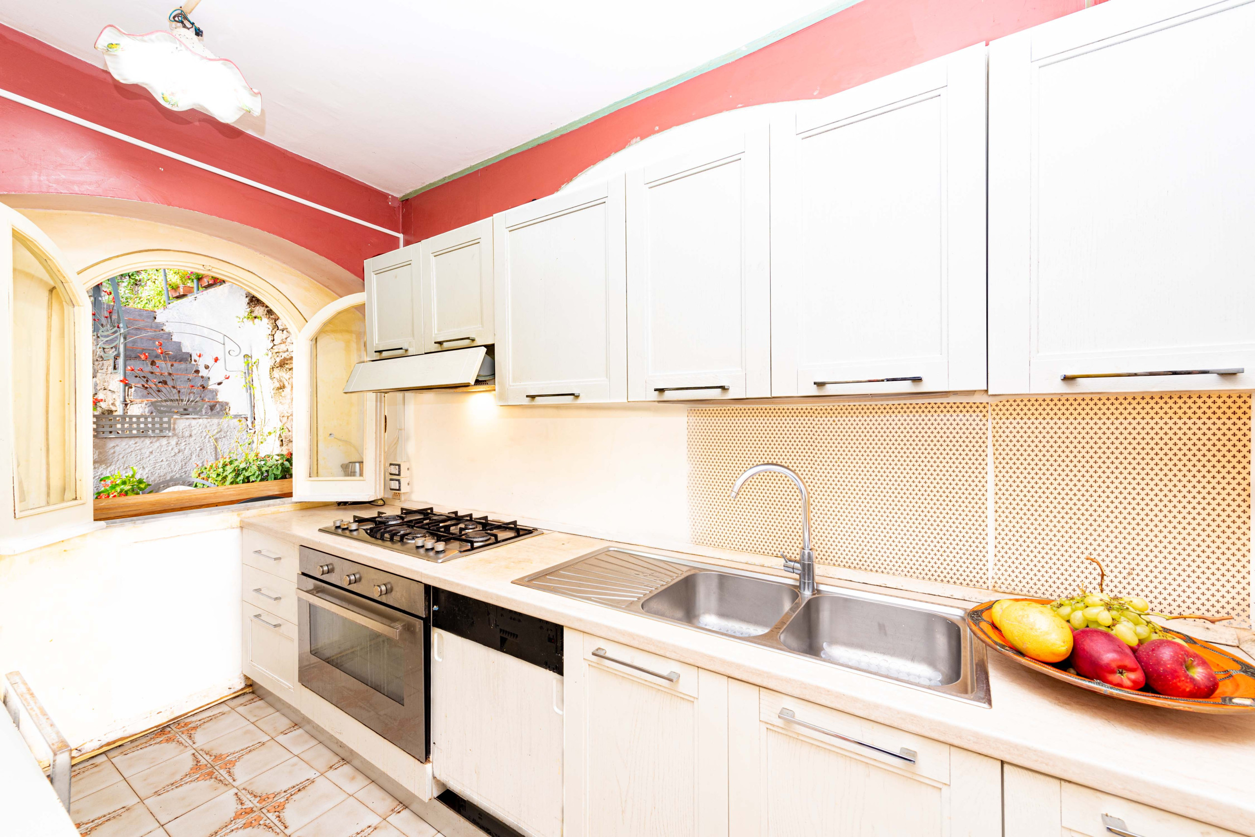 L’accesso è comodo e riservato: dalla strada panoramica si entra attraverso un grande cancello che conduce al parcheggio privato. Un viale circondato da fiori e vegetazione mediterranea porta all’ingresso indipendente della villa. Dal parcheggio sono presenti scale per raggiungere la proprietà.