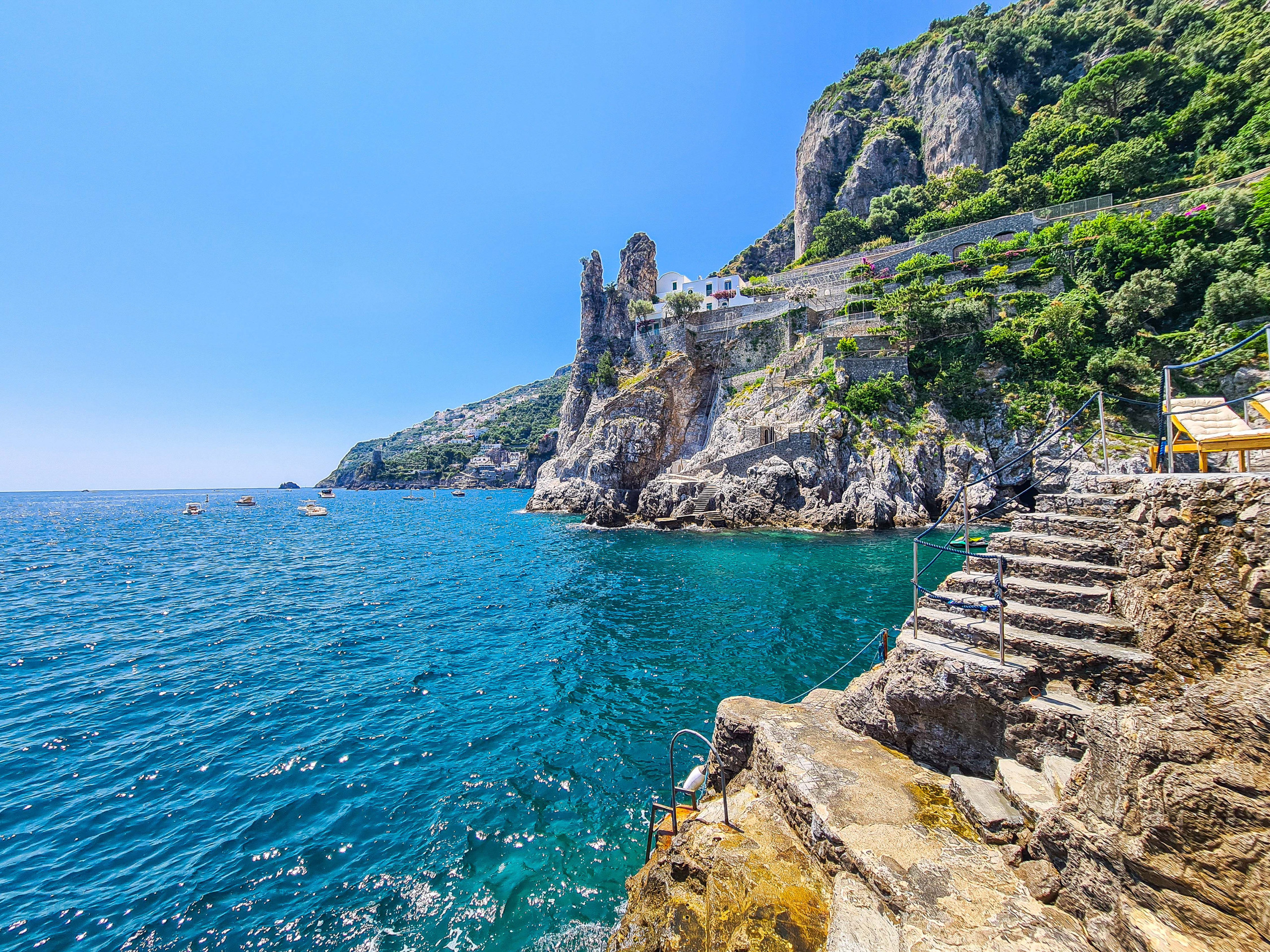 La posizione permette di raggiungere facilmente alcune delle mete più amate della costa: Praiano è a 2 km, Positano a 4 km, Amalfi a 6 km e Ravello a 14 km, mentre Sorrento dista 20 km e Salerno 32 km. A soli 500 metri si trova Marina di Praia, piccolo borgo sul mare con ristoranti e bar caratteristici, raggiungibile anche a piedi.