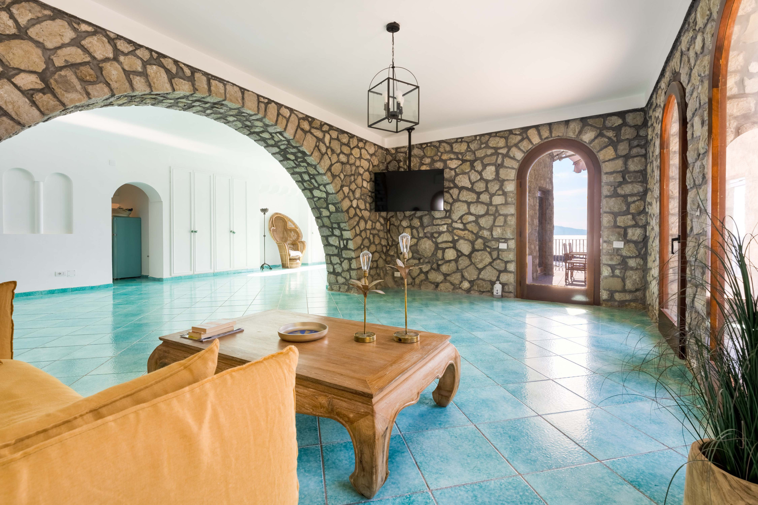 La zona giorno si compone di due ampi saloni luminosi e accoglienti, arredati con gusto e pensati per offrire spazi conviviali e funzionali. Uno dei saloni dispone di un comodo divano letto. Gli ambienti sono ideali sia per momenti di relax sia per condividere cene e serate in compagnia.