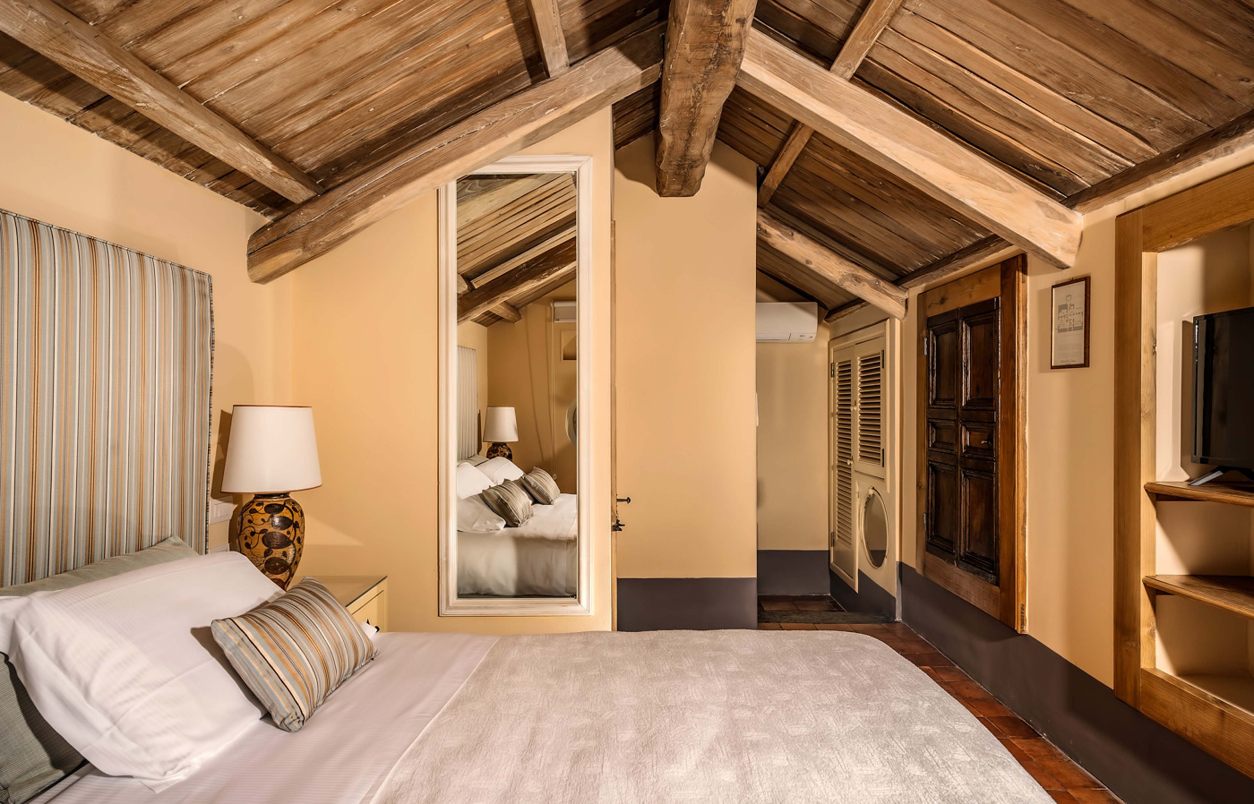 Ogni camera da letto è molto spaziosa, con soffitti alti, aria condizionata e bagno privato. Entrambe le suite sono decorate in un elegante e caldo stile barocco napoletano, che caratterizza l'intera villa. Colori caldi e luminosi si mescolano con mobili in legno antico e altri elementi decorativi in stile barocco per abbinare i tessuti più pregiati, come l'organza e i velluti rosso scuro.