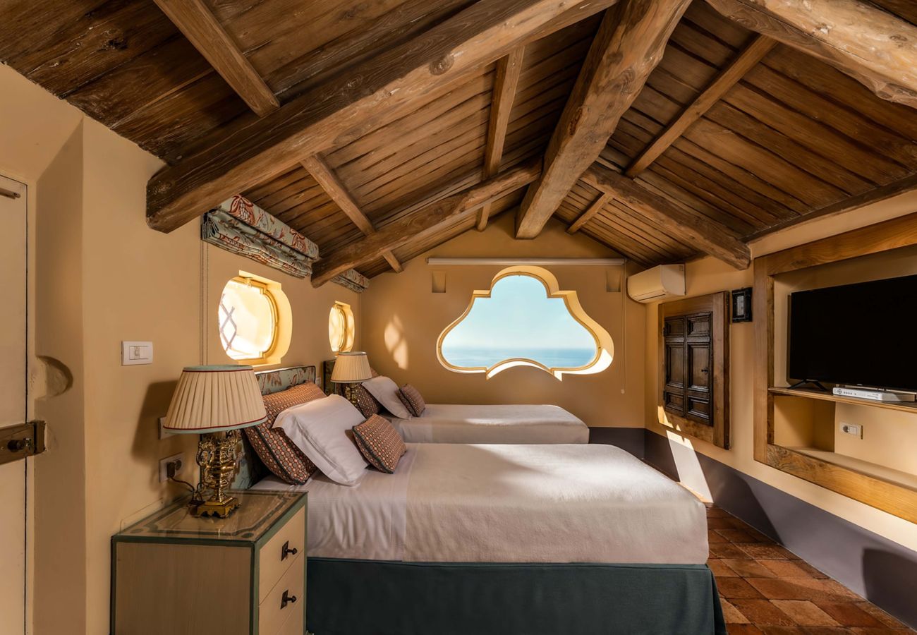 La seconda camera ha un piccolo altare e porte francesi che danno accesso al balcone. Il bagno privato è in stile simile al primo. Il balcone con vista mare presenta anche un'antica piccola torre con un'incantevole e caratteristica cupola rivestita di piastrelle di ceramica.