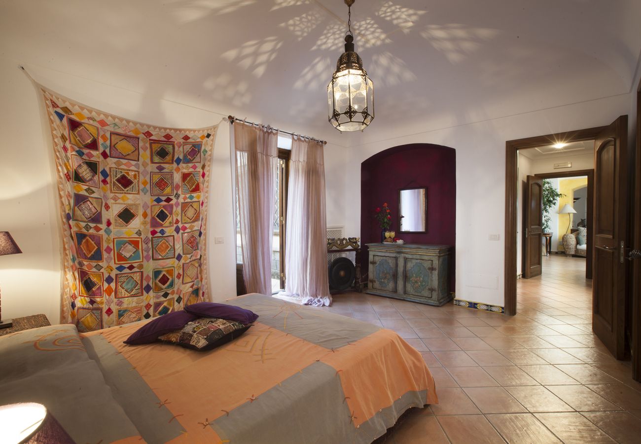 La zona giorno open space al pianterreno è altrettanto impressionante, con mobili antichi, enormi archi e caminetti in pietra e ceramiche tradizionali di Amalfi. Cenate intorno all’imponente tavolo da pranzo in legno (per 12) guardando dalle portefinestre il giardino, o rannicchiatevi con un libro nell’accogliente salotto. La suggestiva cucina in stile antico ha ogni comfort e porte che danno sulla terrazza.