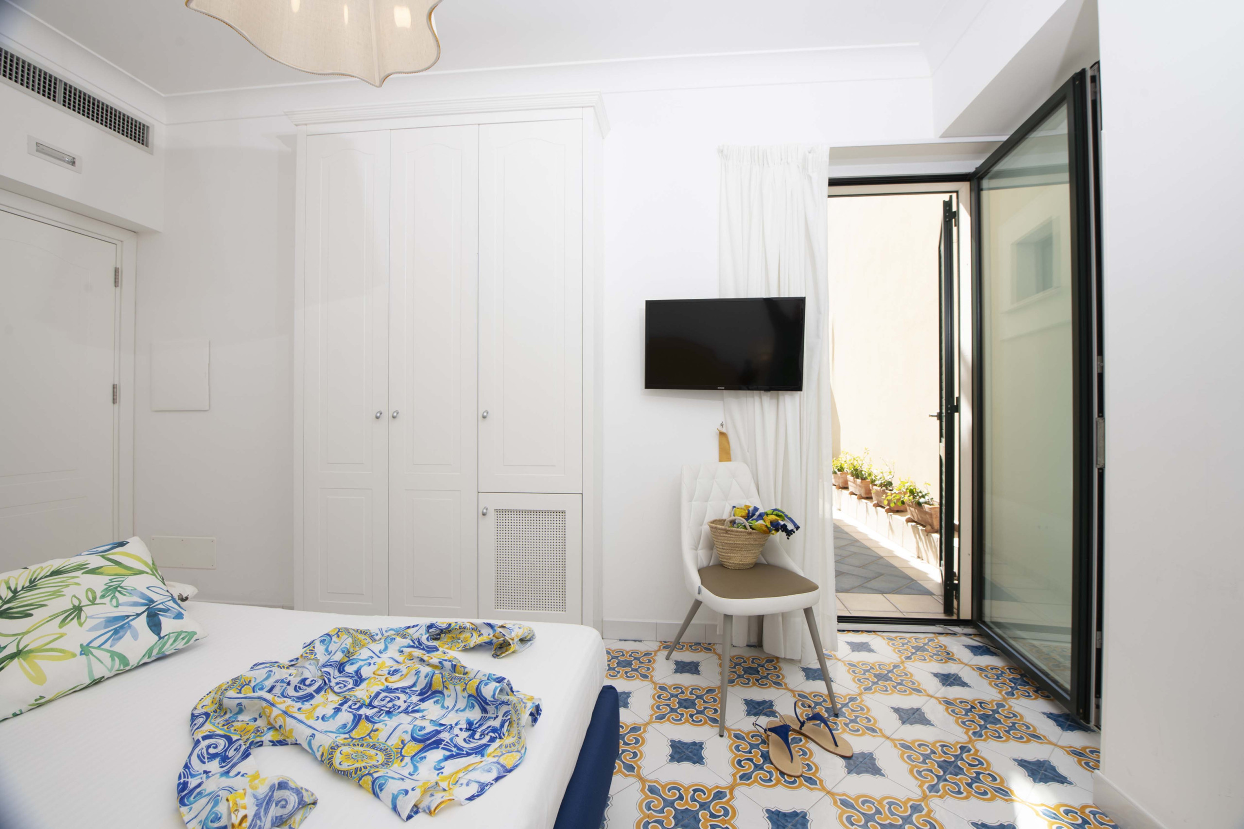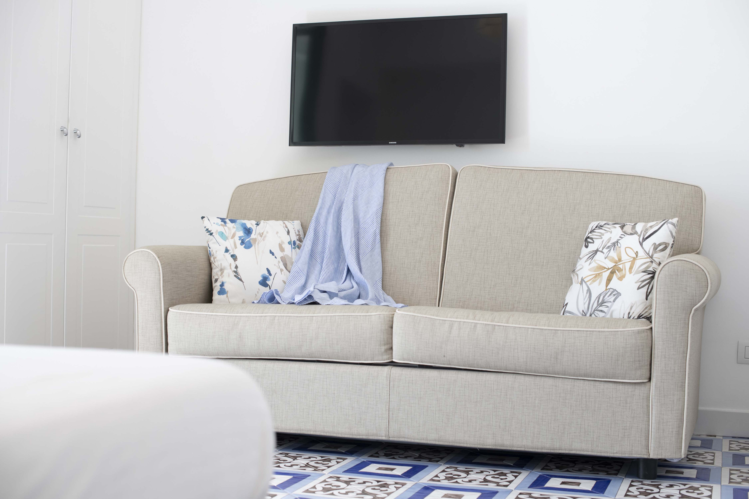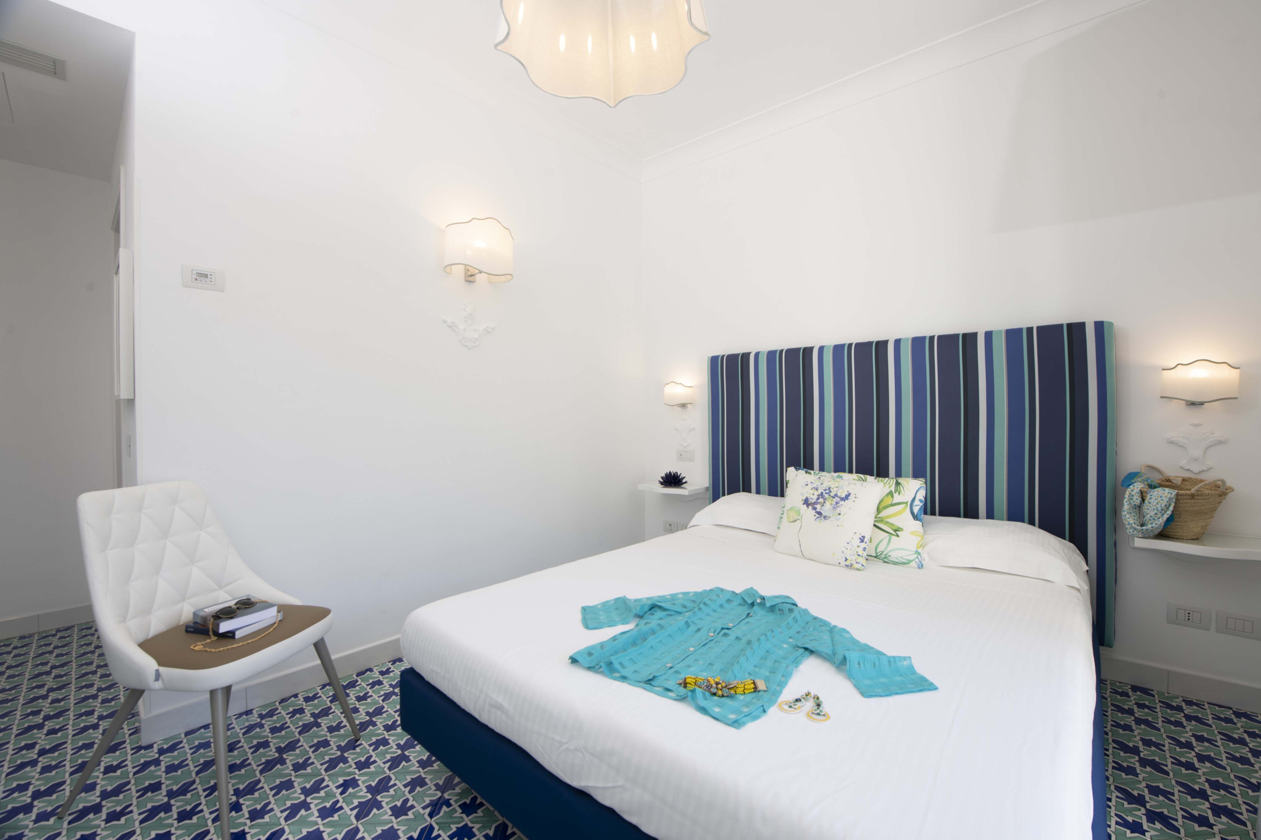 • Bedroom 5 with ensuite bathroom: double bed, TV, air conditioning, heating, small private sea view terrace, minibar, safe.