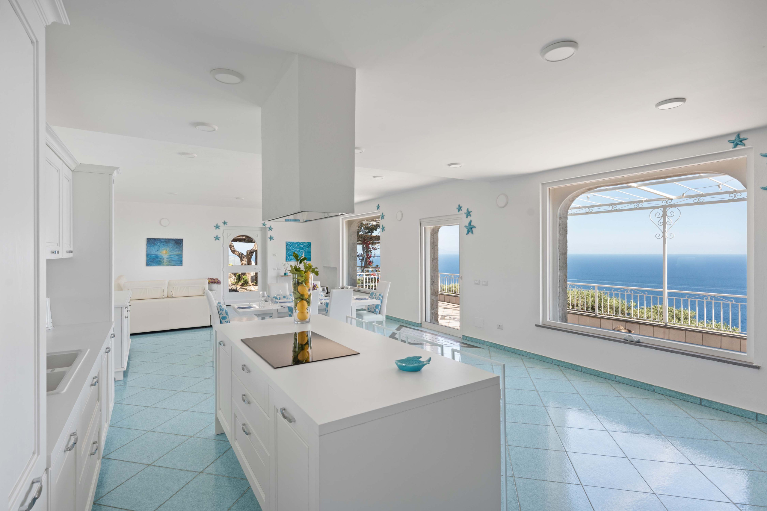 • The villa is in Massa Lubrense, a stunning rural area that is suitable for children, on a hill overlooking the sea.