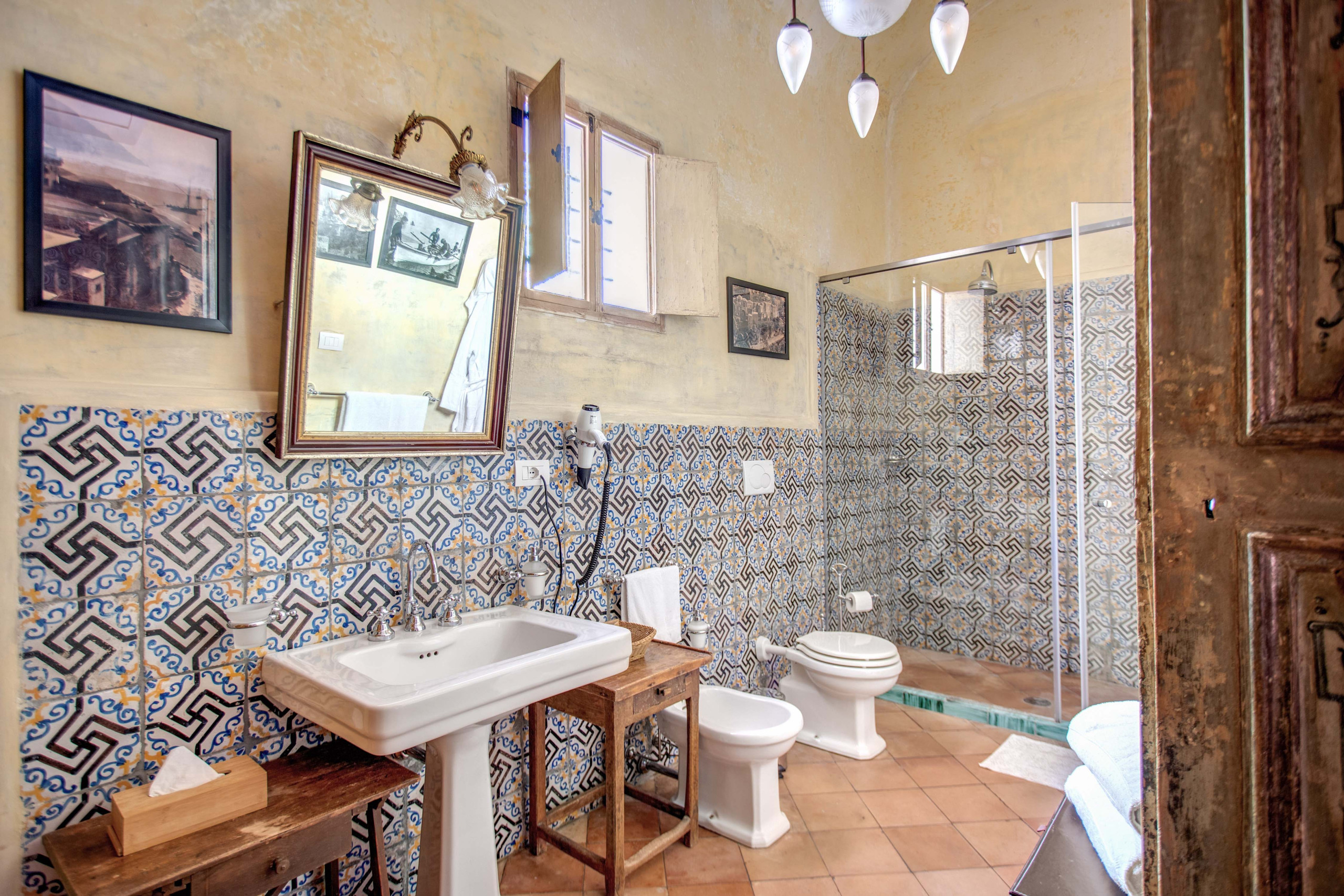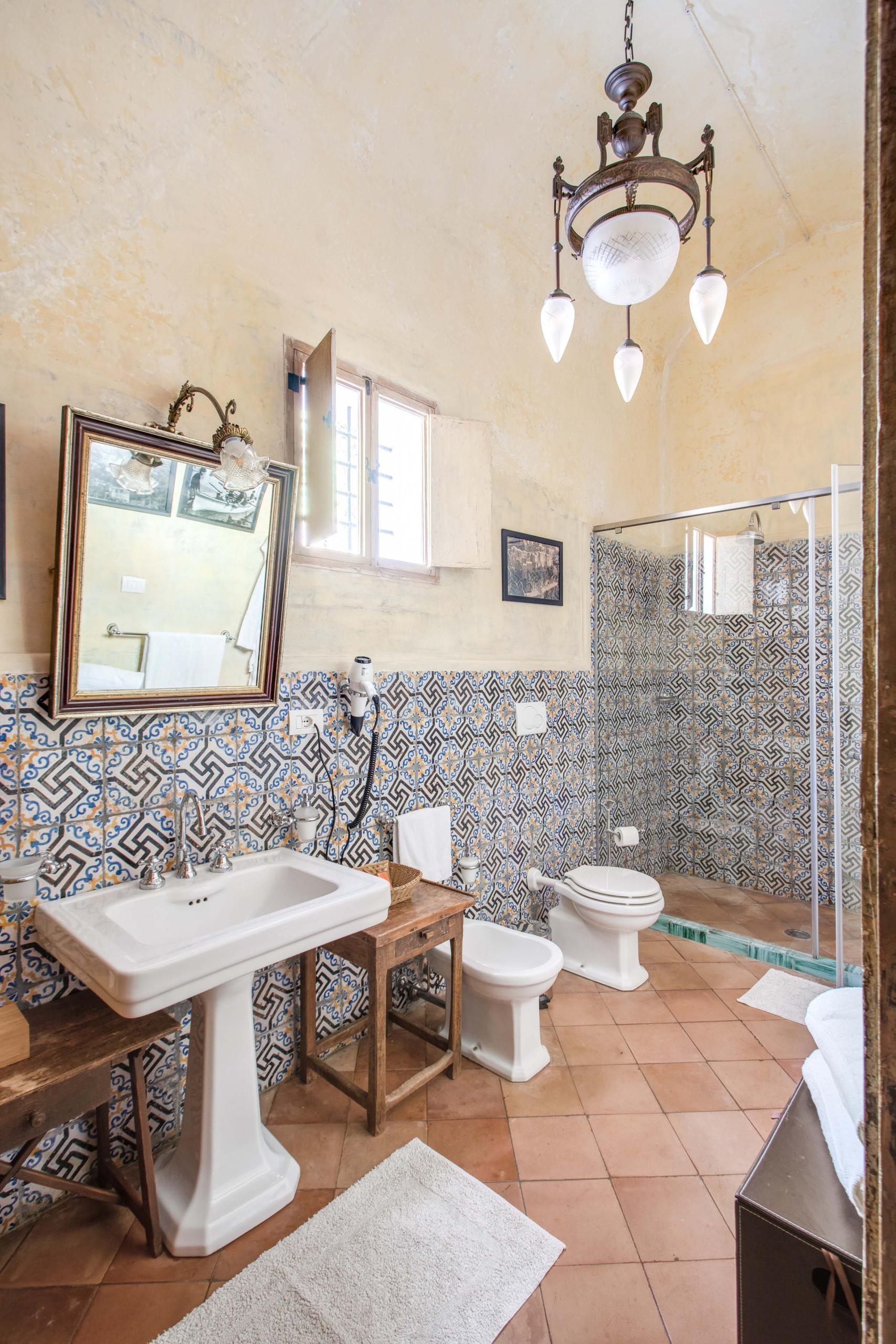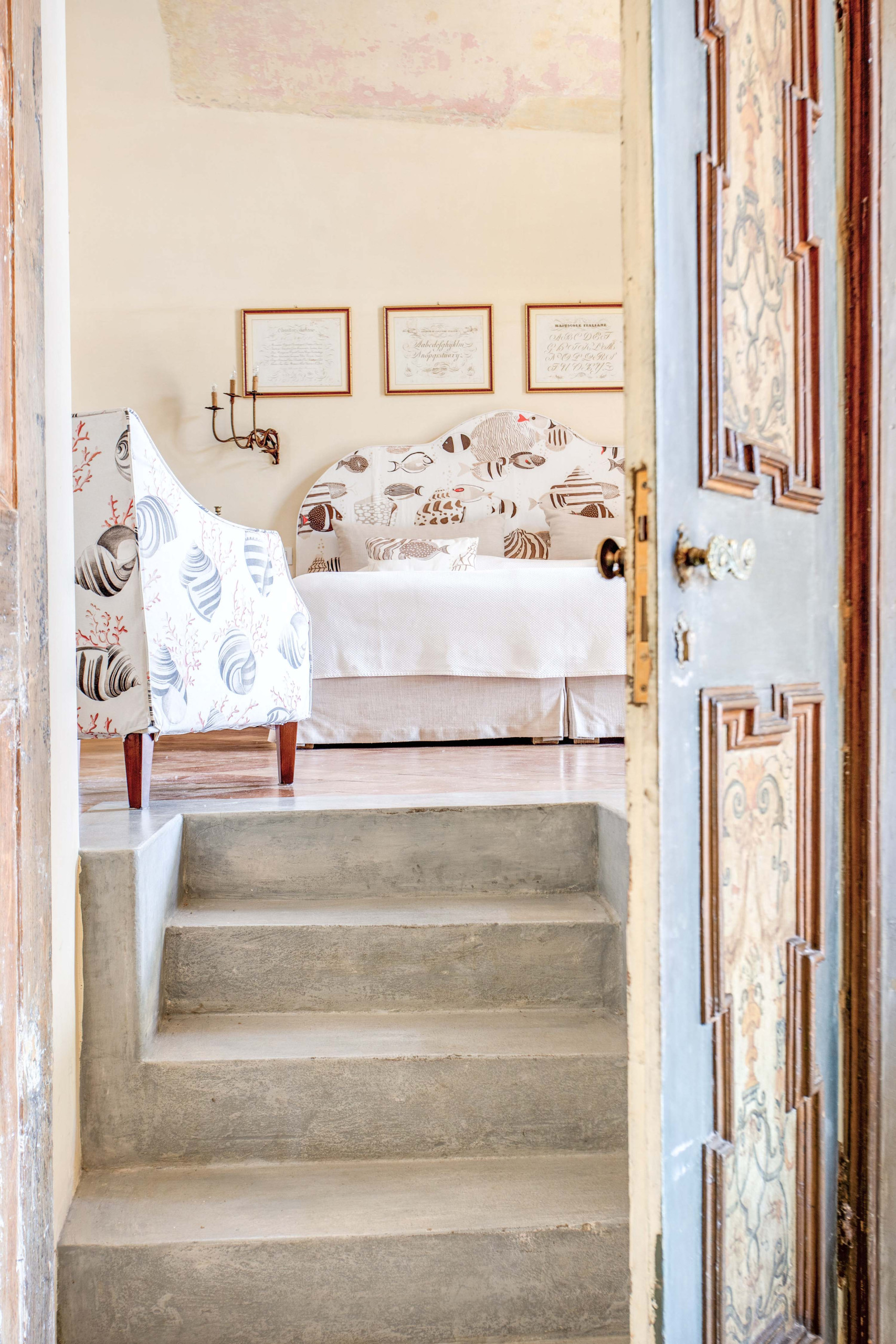 Generous interiors unfold across multiple levels, offering refined living and entertaining spaces designed for both privacy and conviviality. On the ground floor, the villa’s heart comes to life with an elegant dining room arranged in two adjoining vaulted chambers, a grand living area composed of richly decorated frescoed rooms, and a fully equipped professional kitchen—ideal for tailor-made culinary experiences prepared by your dedicated staff.