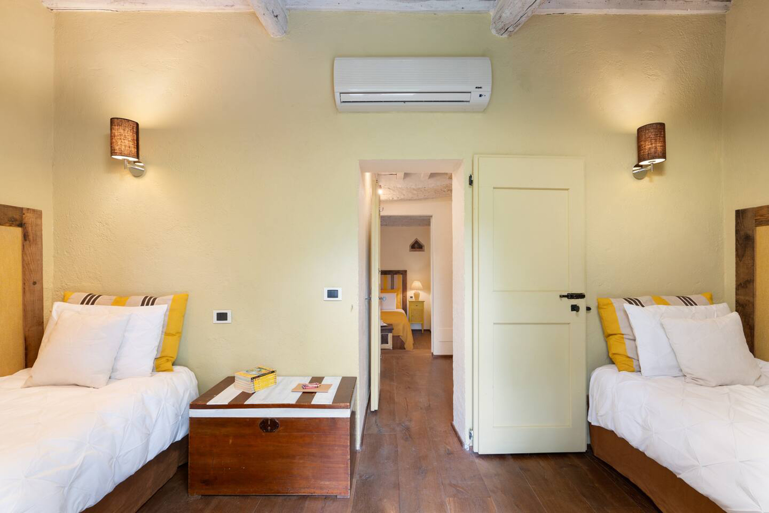 • Bedroom 3: Two single beds. Equipped with AC and heating