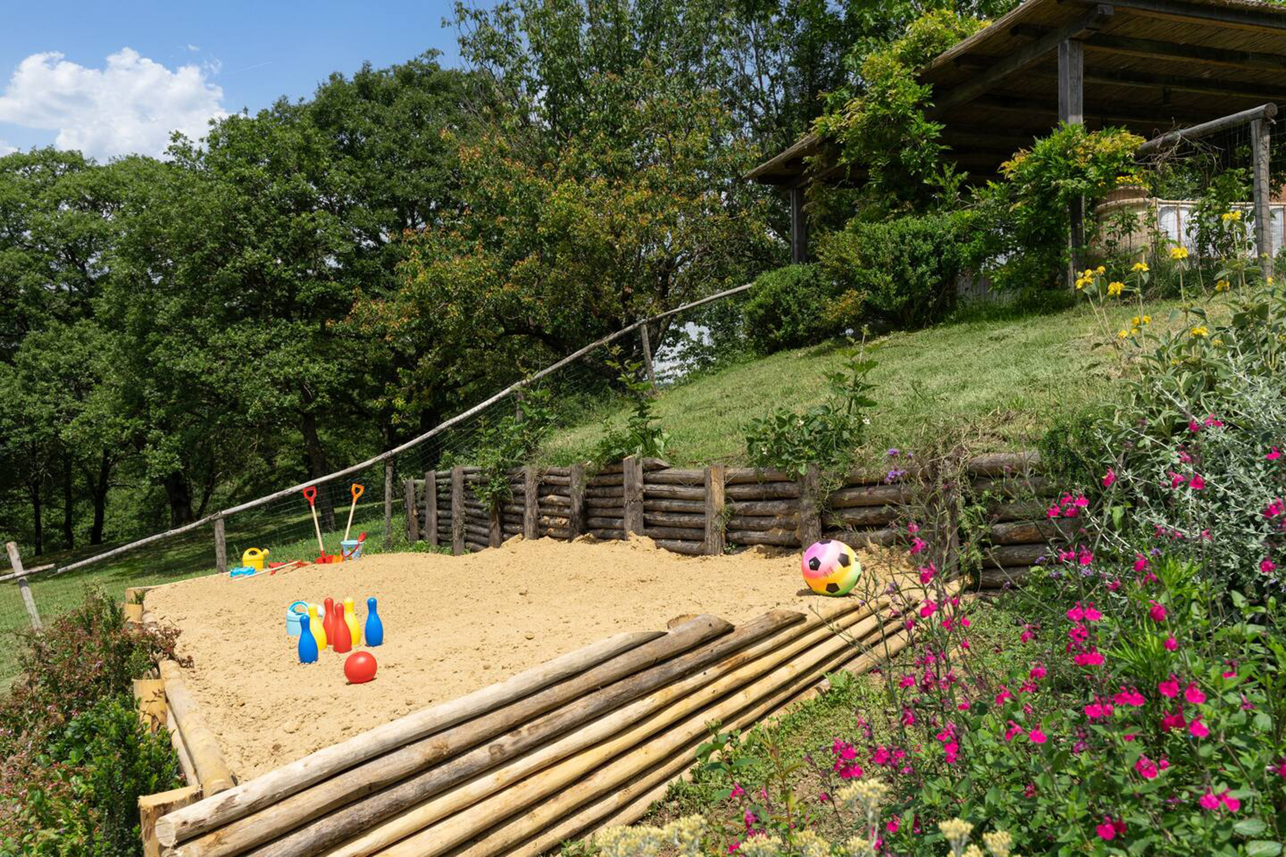 • Private swimming pool equipped with sun loungers, outdoor shower, shaded area, fenced and gated